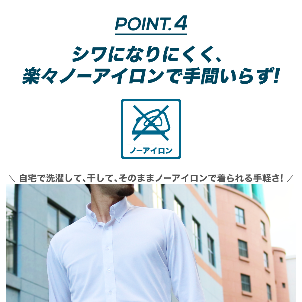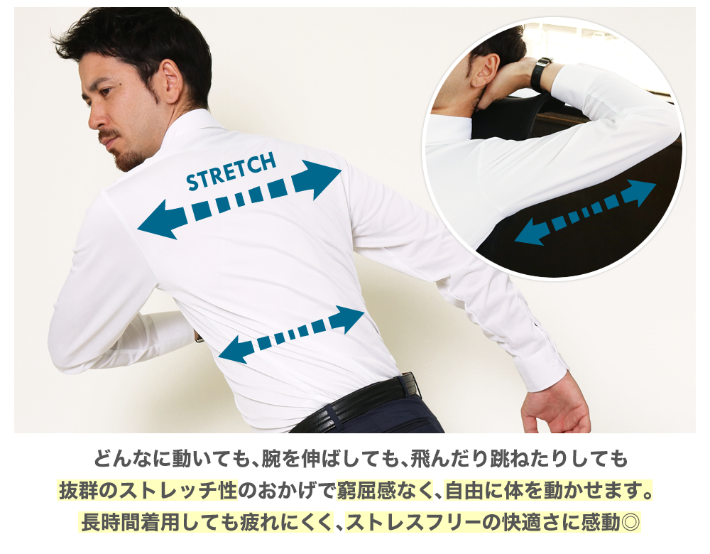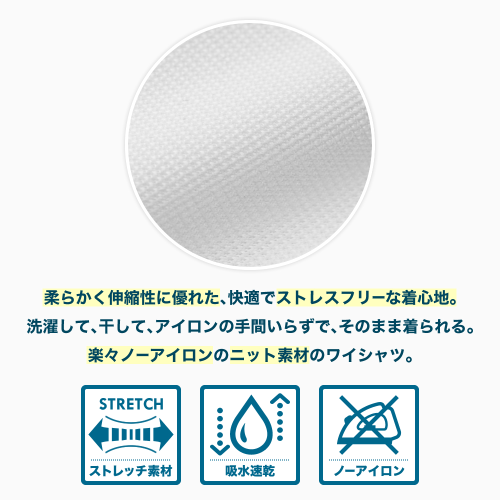 洗濯して干すだけ!楽々ノーアイロン!どんなに動いても着心地快適なニットシャツ