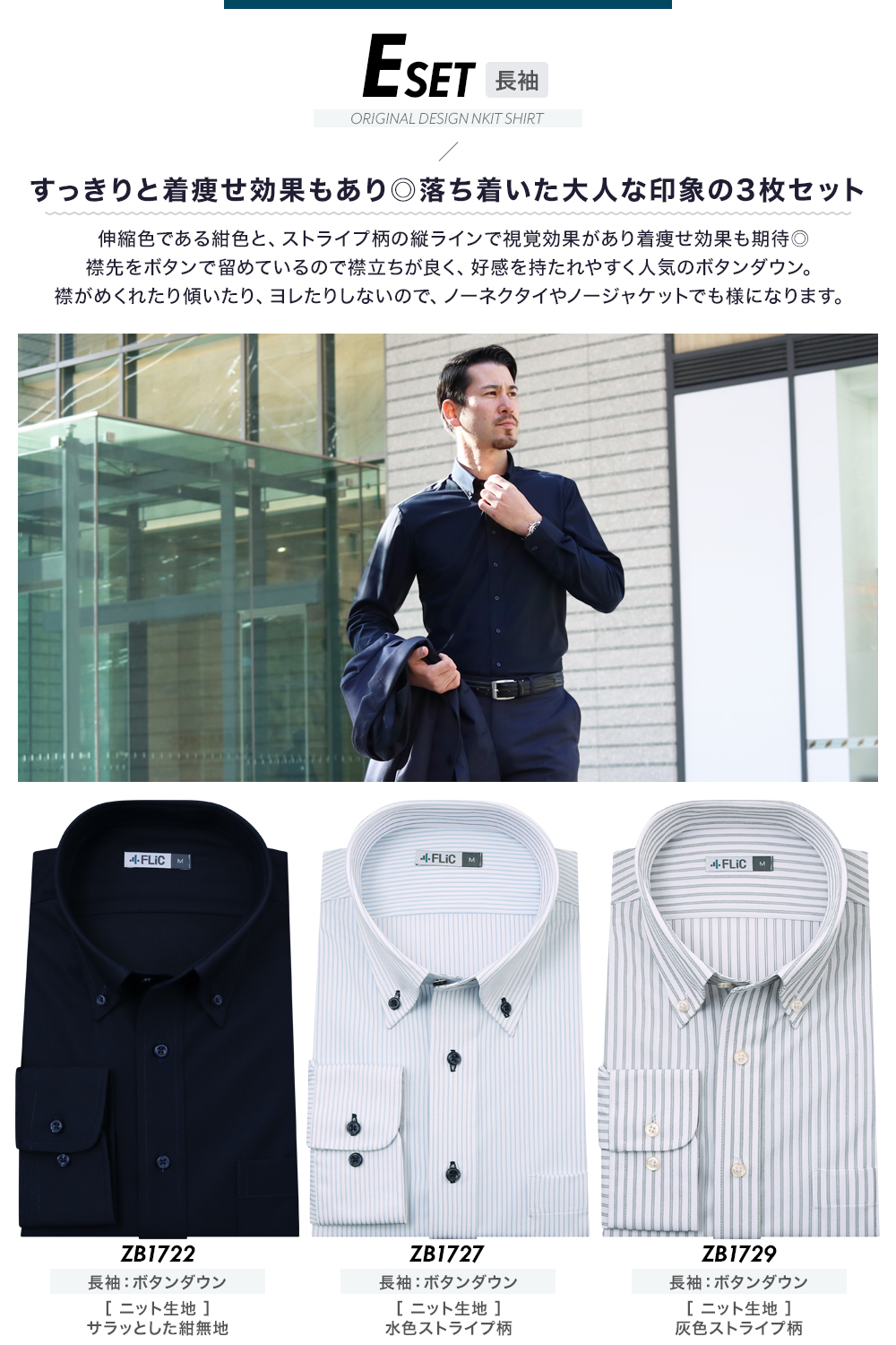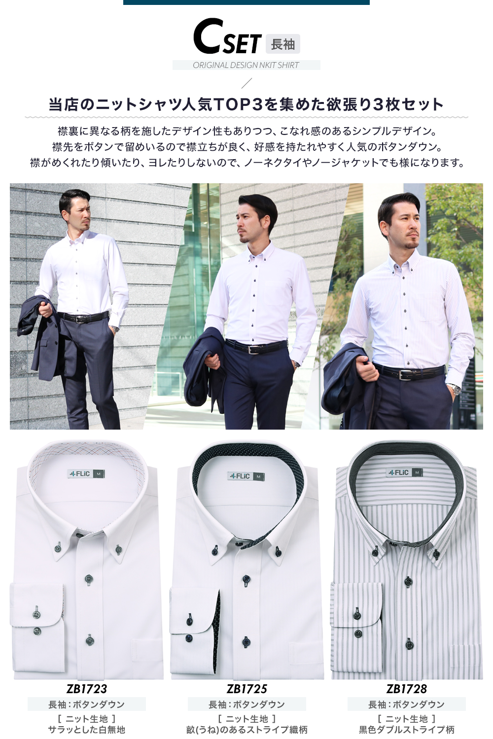 zb-set / 時短ニットワイシャツ3枚セット 【送料無料】